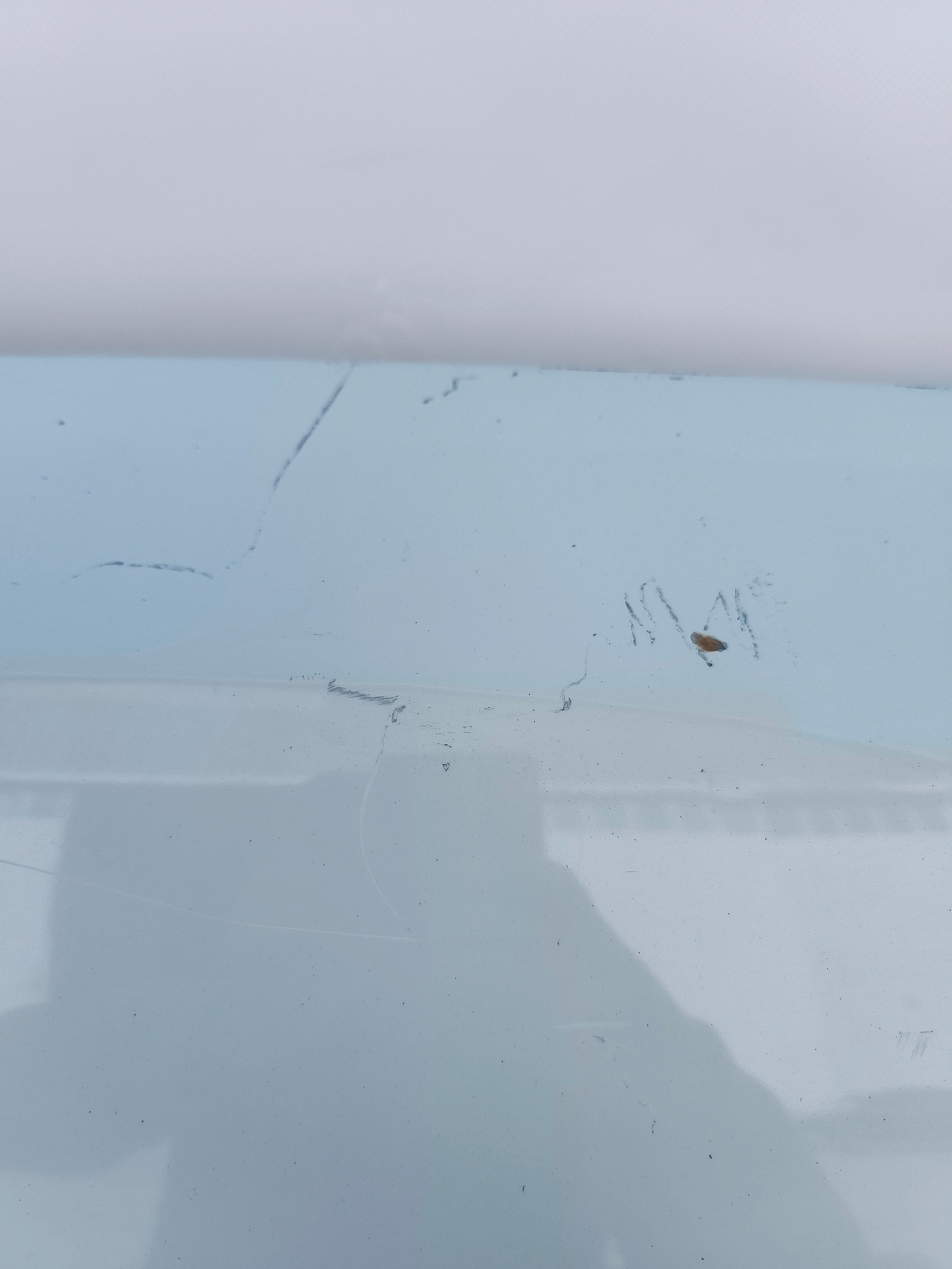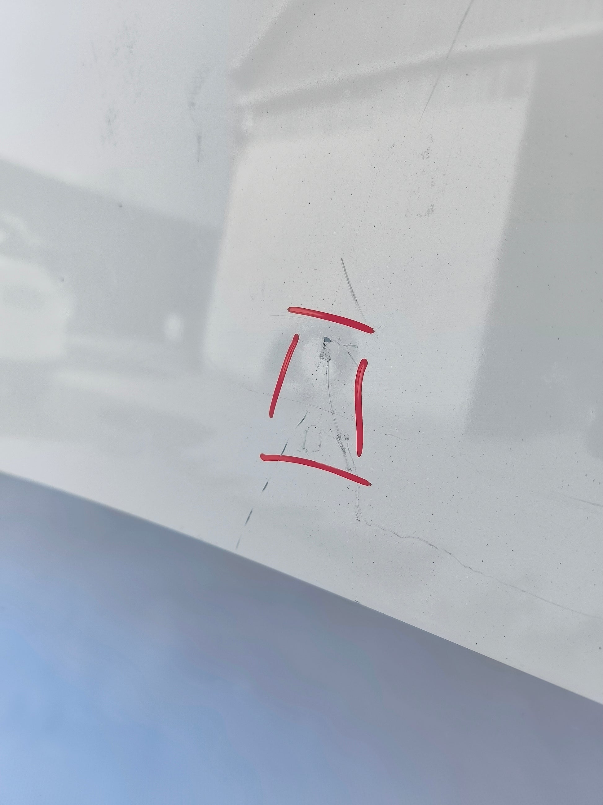 ZUSTAND DES ARTIKELS: Weist Kratzer, abgeplatzten Lack und zwei Dellen auf (rot markiert)