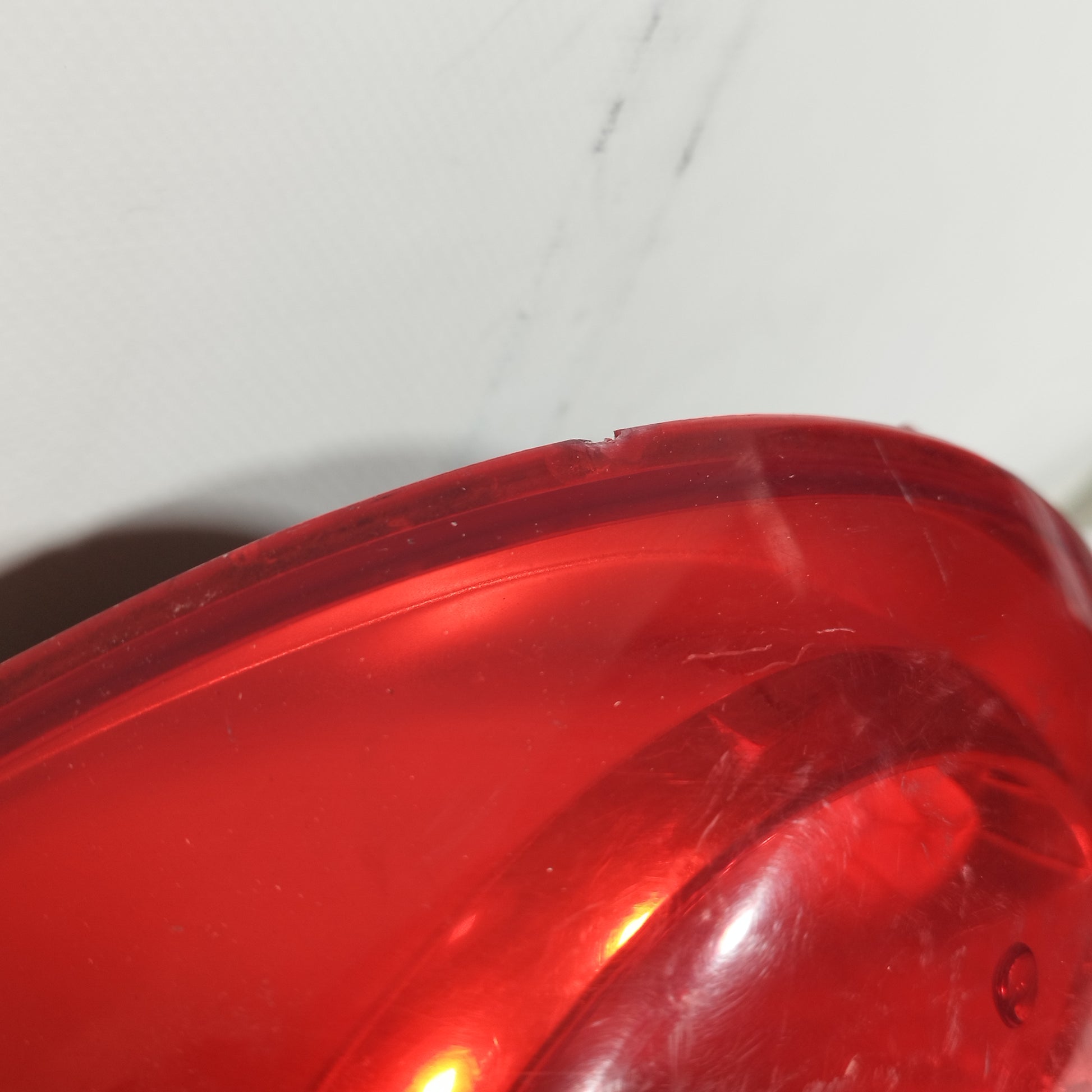 ZUSTAND DES ARTIKELS: Weist Kratzer, eine kleine Absplitterung (Foto Nr. 5) und beschädigtes Plastik auf (Foto Nr. 6).