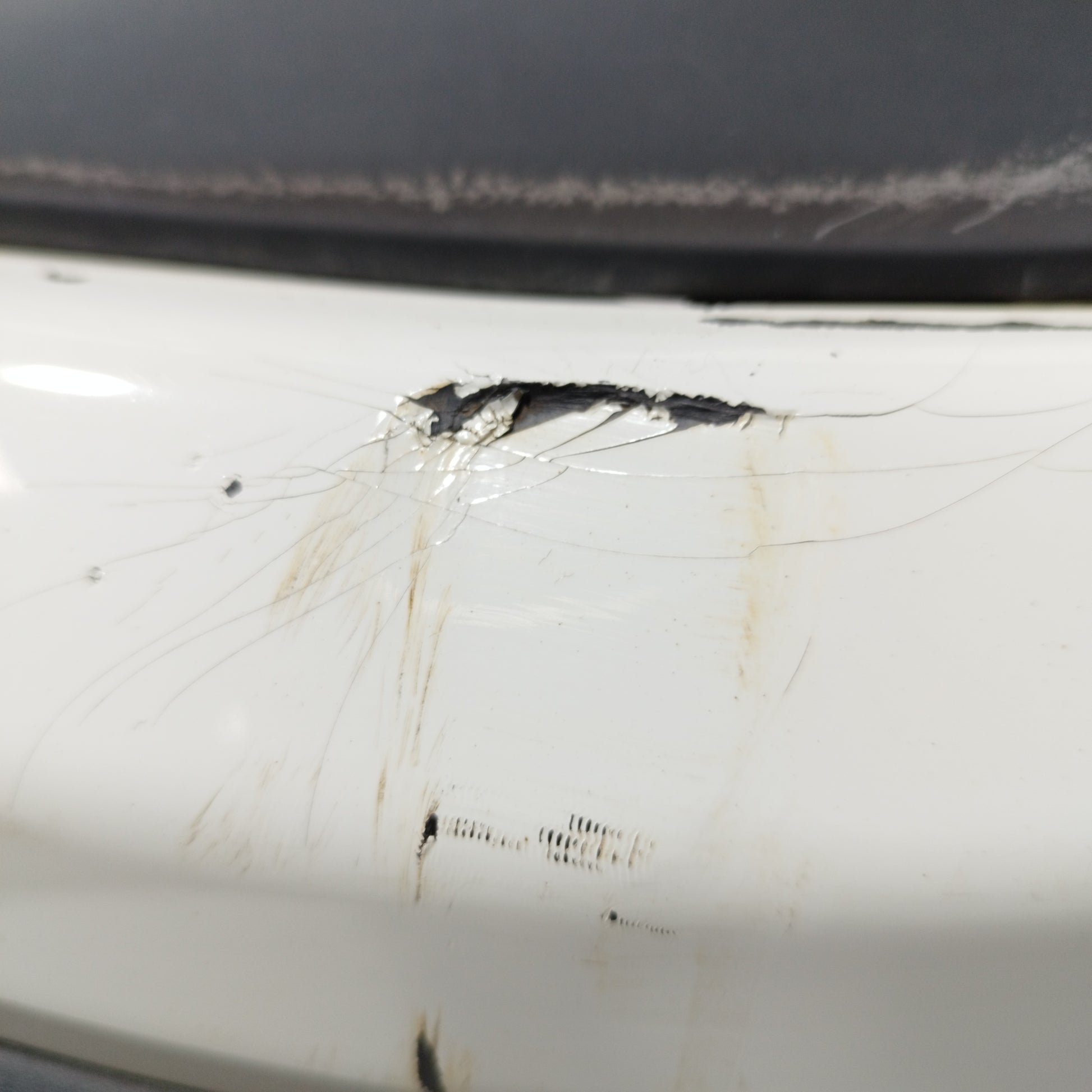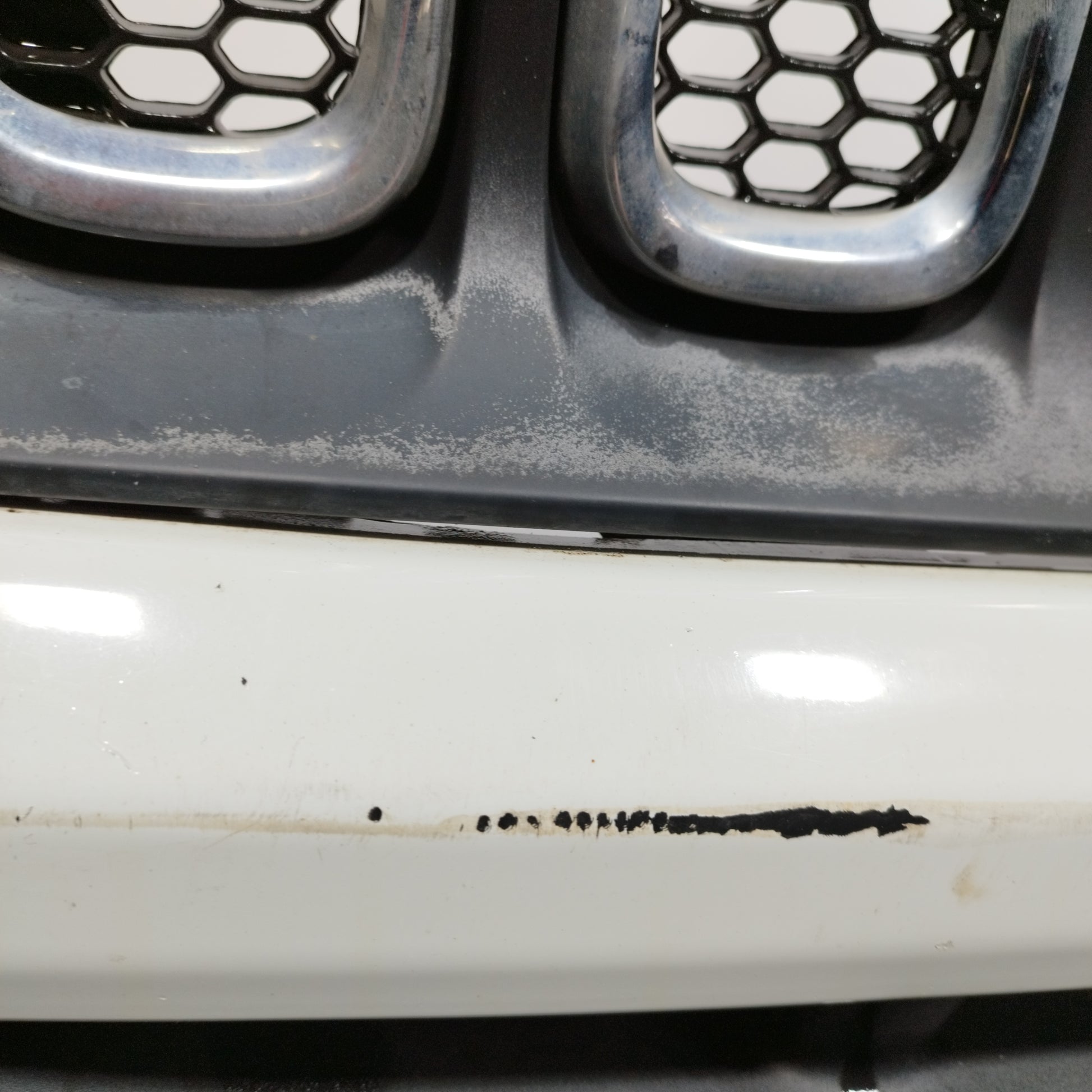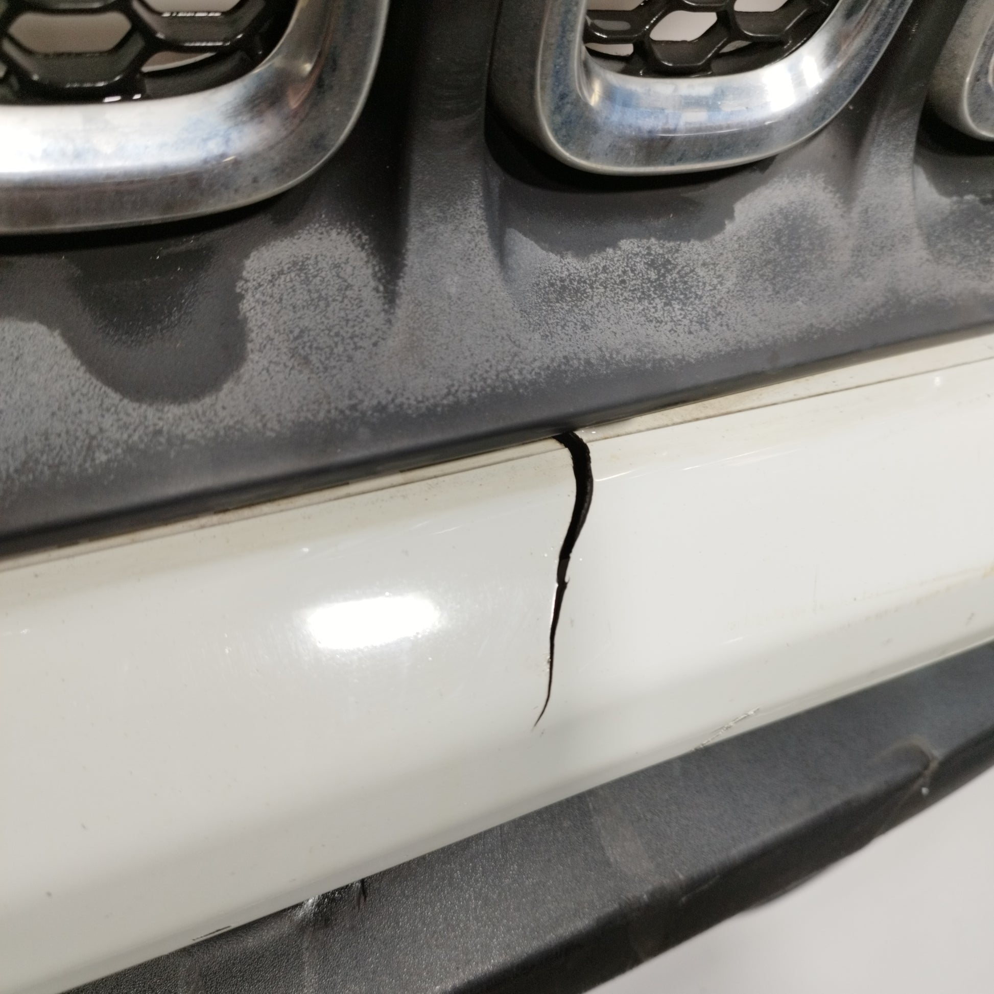 - Der Kühlergrill weist Risse im Kunststoff auf.