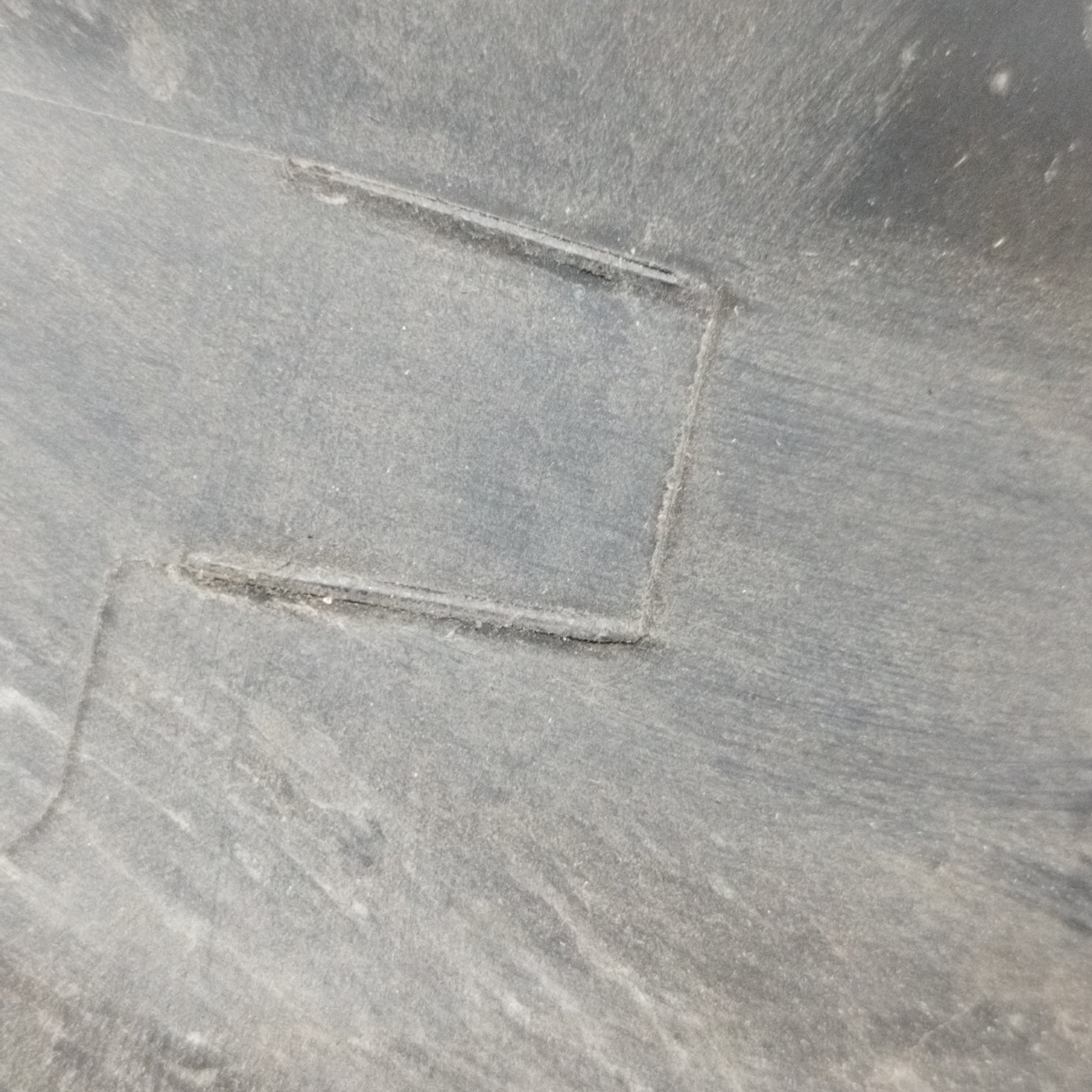 - Die linke Seitenleiste weist Kratzer, eine Vertiefung und 4 abgebrochene Clips auf.