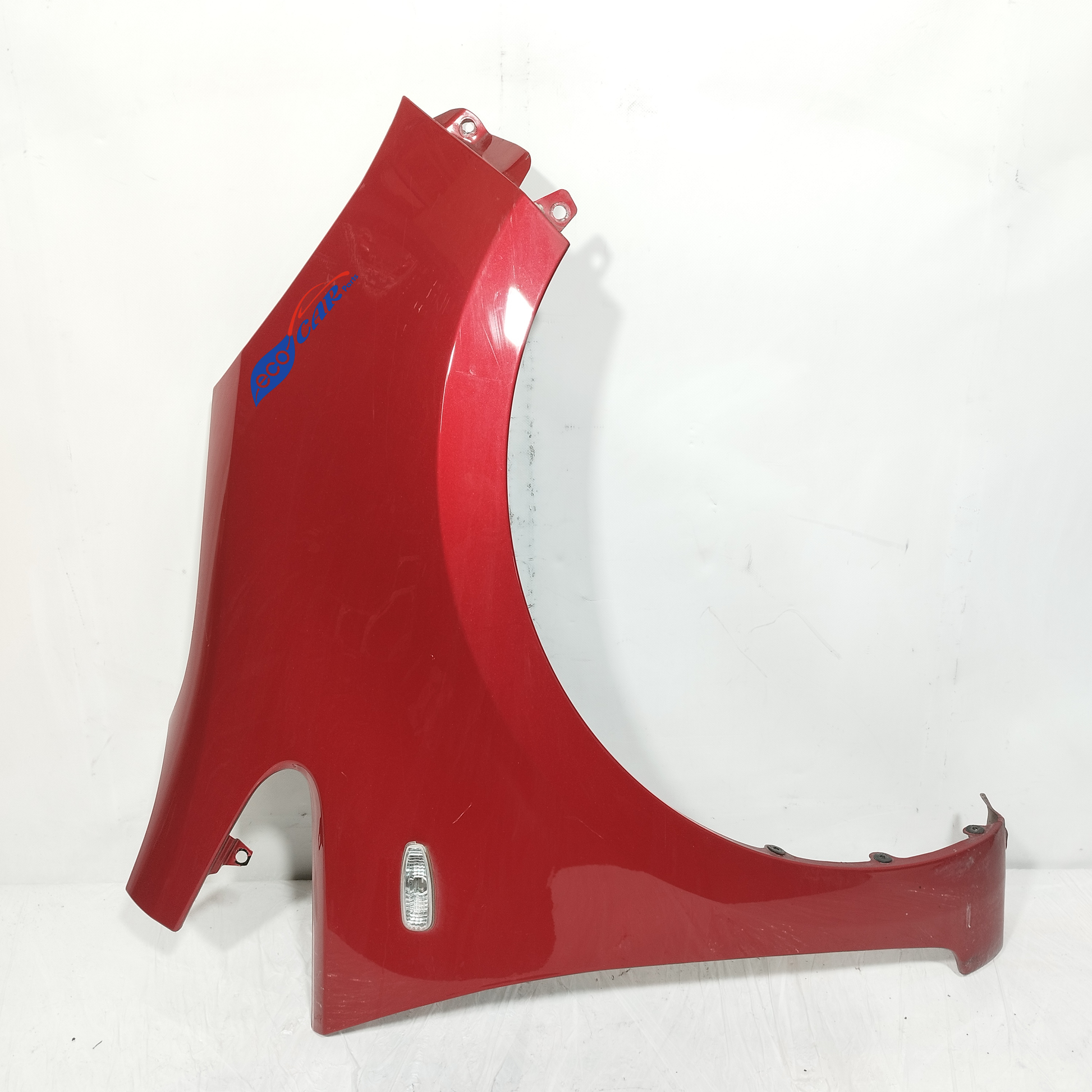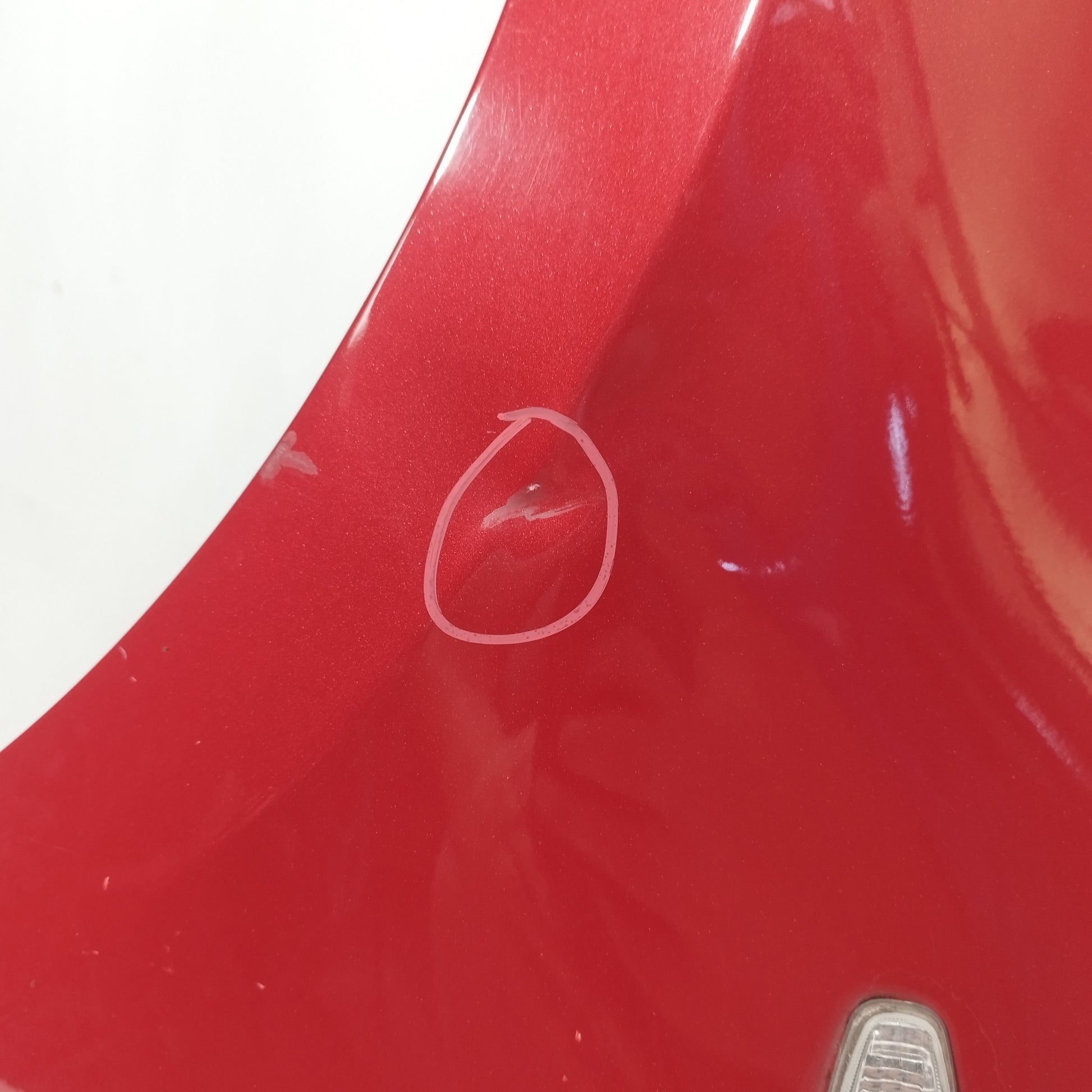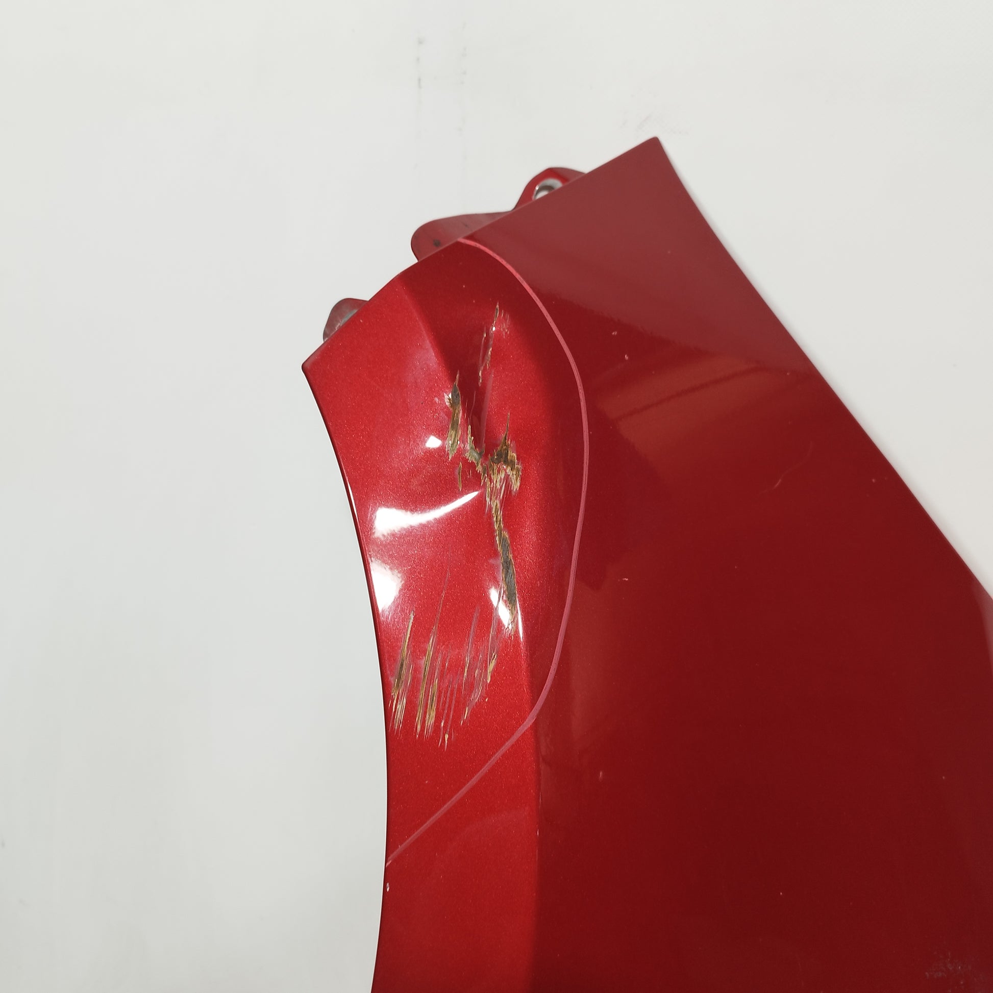Der linke Kotflügel hat Dellen.