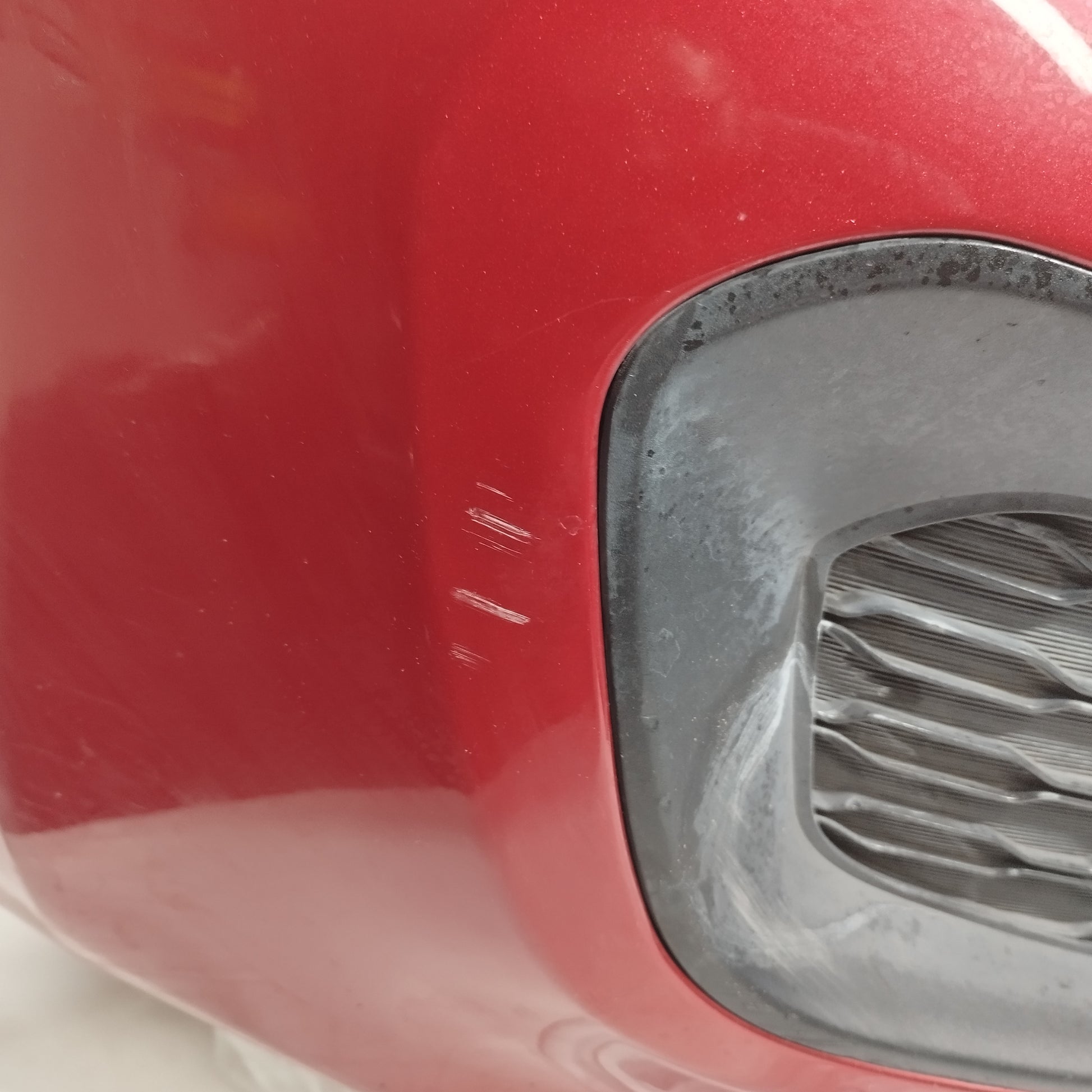 Die Stoßstange weist leichte Kratzer auf und der Verschluss ist defekt.