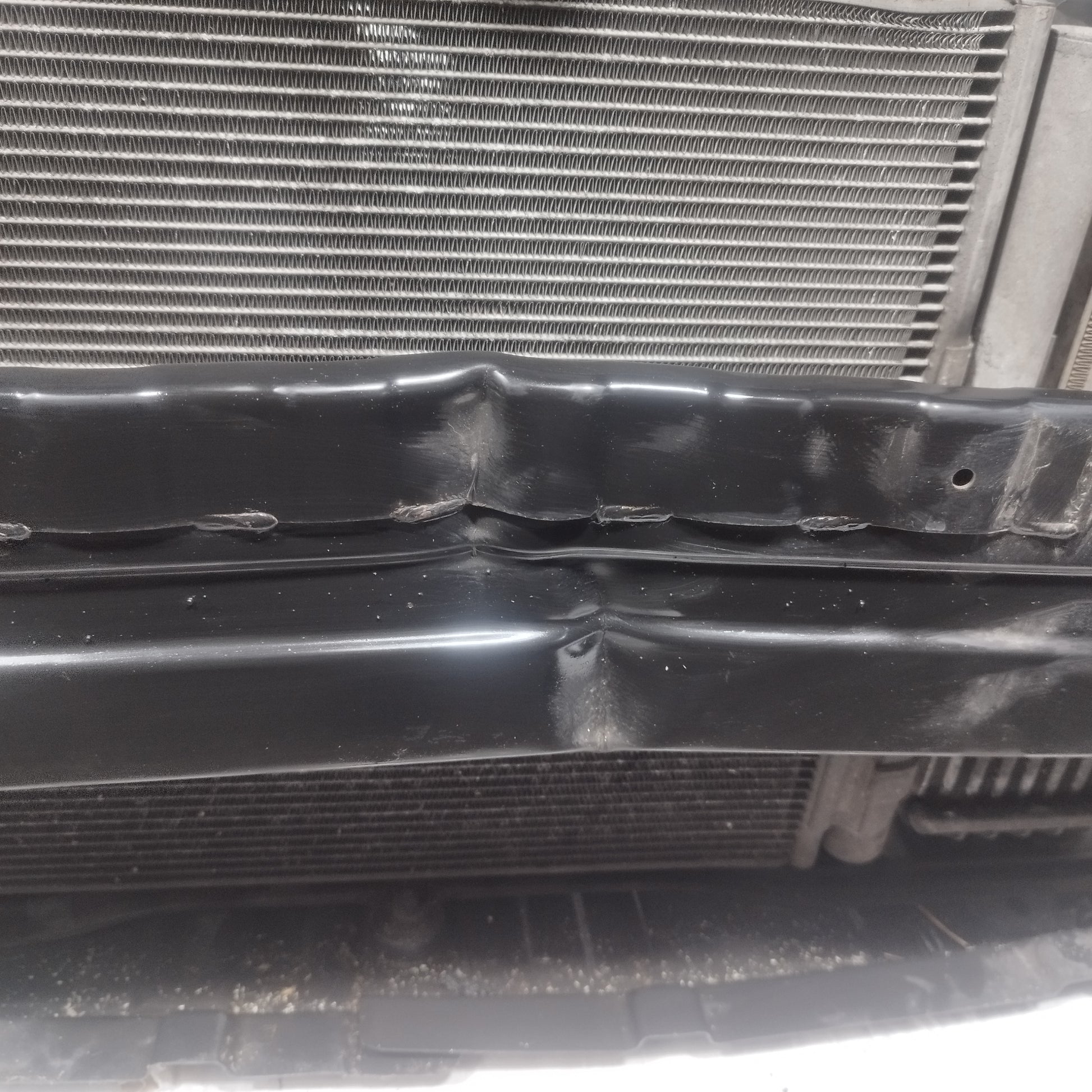 Die Motorhaube hat eine kleine Delle.