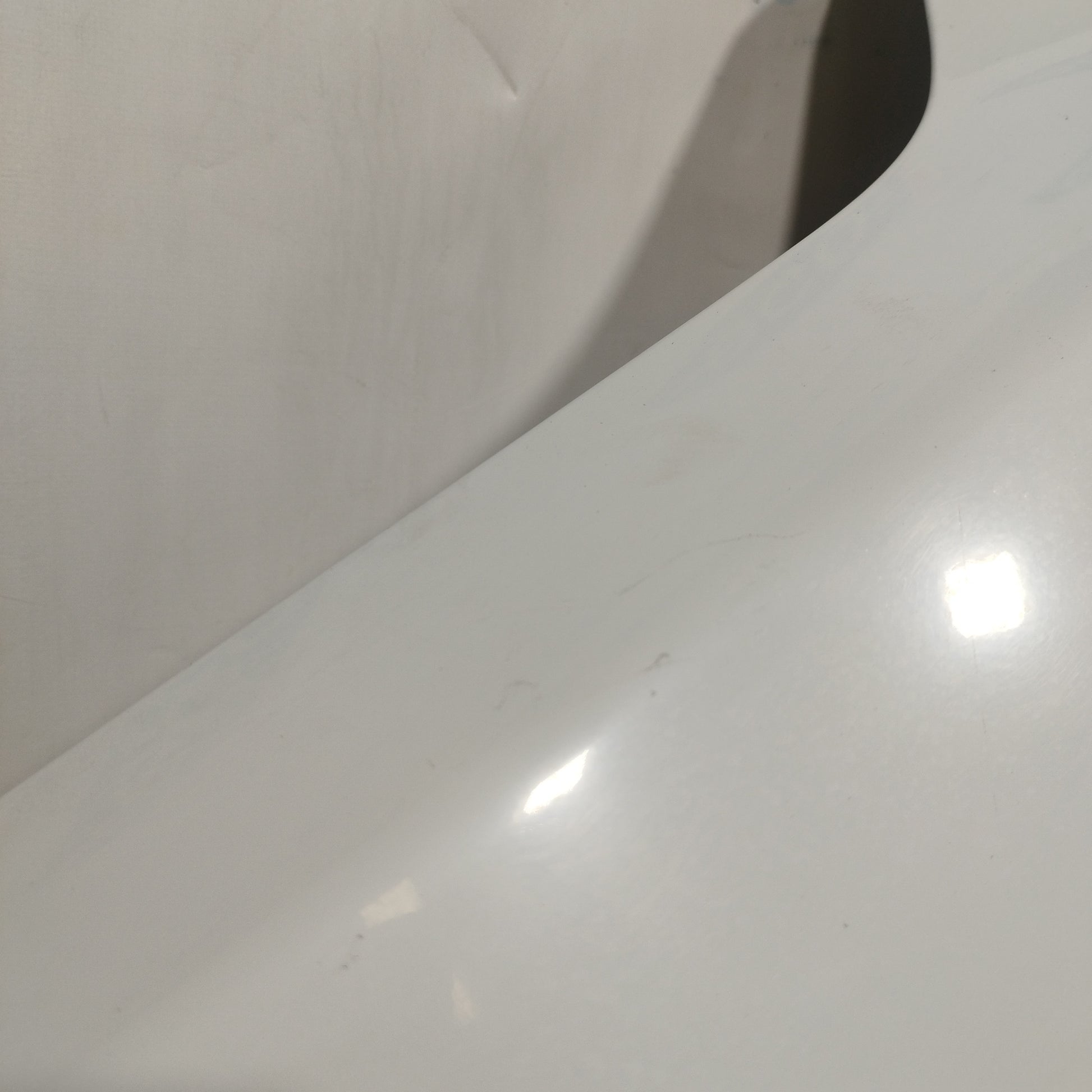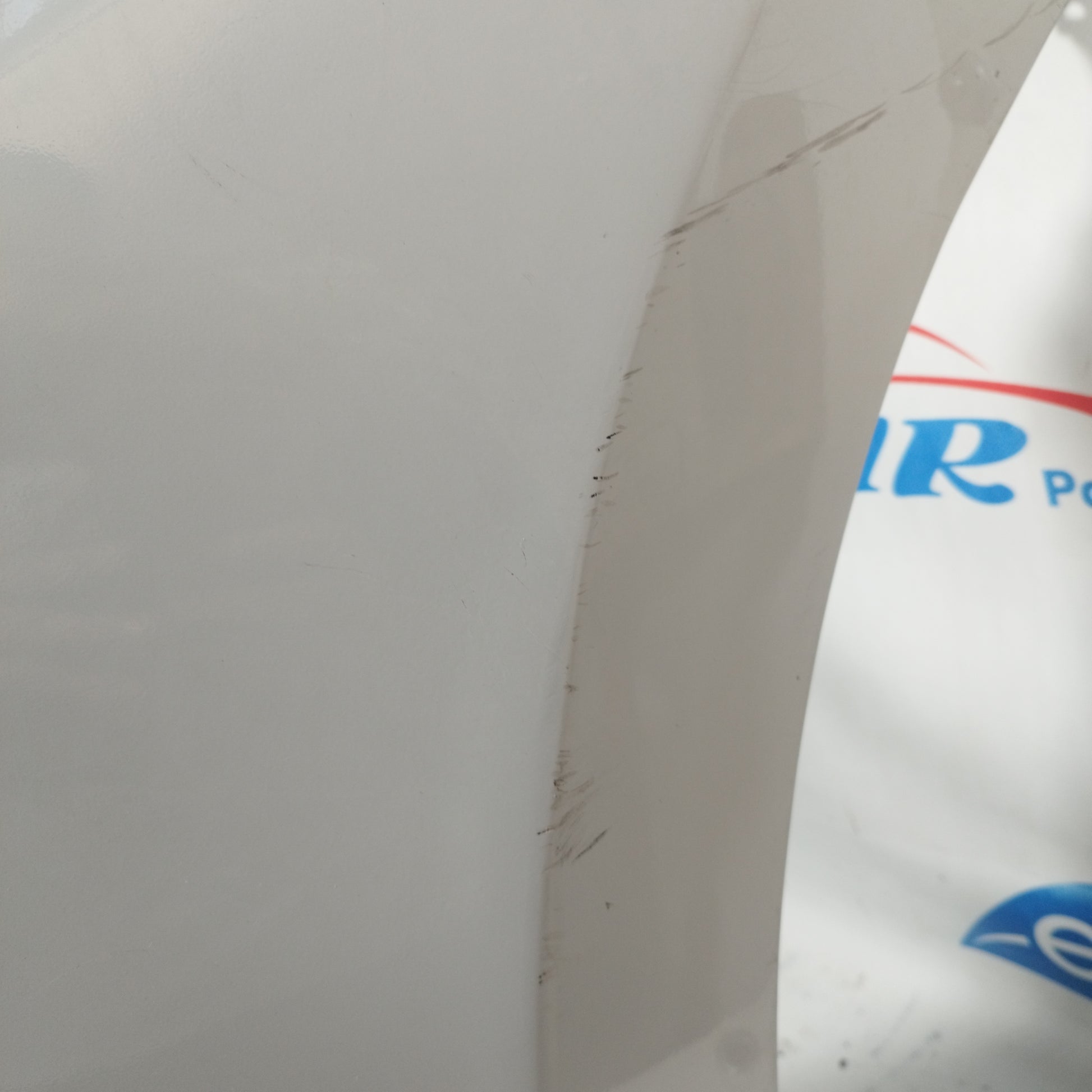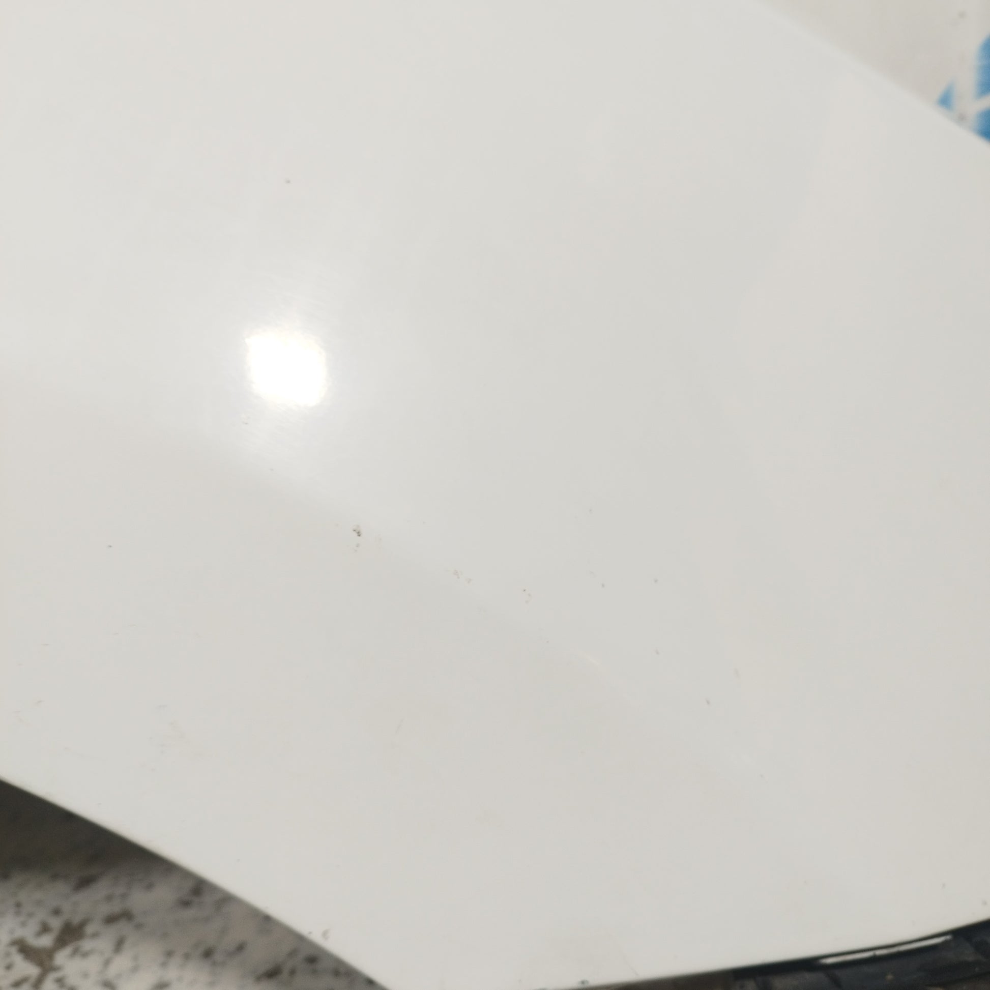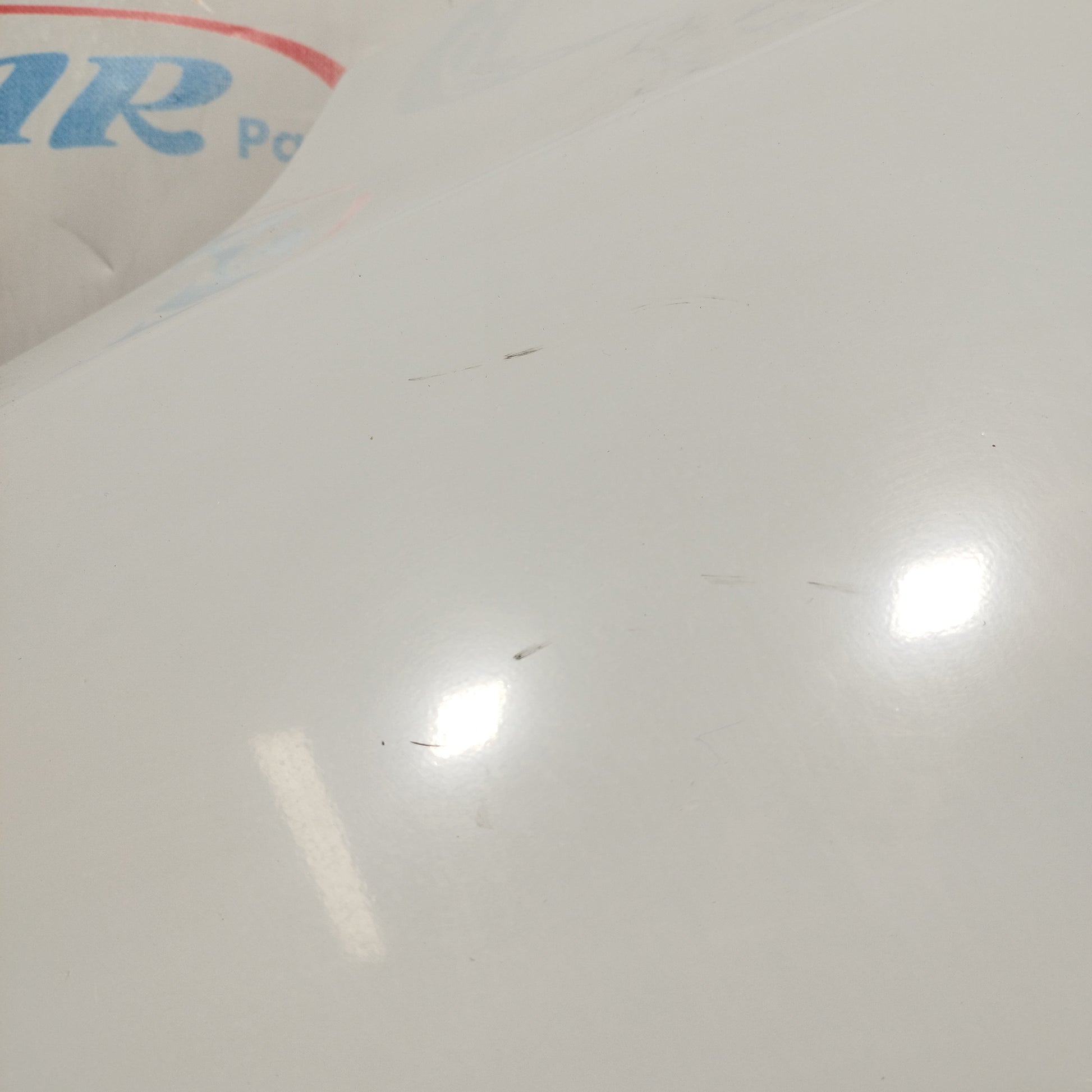 ZUSTAND: Die Motorhaube weist leichte Kratzer und einige kleine Lackabplatzer auf (Fotos 3–6). Der Stoßfänger hat tiefe Kratzer (Fotos 10–16), abgebrochene/beschädigte Befestigungsclips (Fotos 17–21) und ein Loch im Kunststoff des linken Nebelscheinwerfers (Fotos 21–23). Der linke Kotflügel hat leichte Kratzer (Fotos 26–27). Der rechte Kotflügel hat leichte Kratzer und eine Delle (rot markiert). Die Scheinwerfer sind trüb und weisen einige Kratzer auf. Die Regenrinne hat zwei abgebrochene Befestigungsclips.