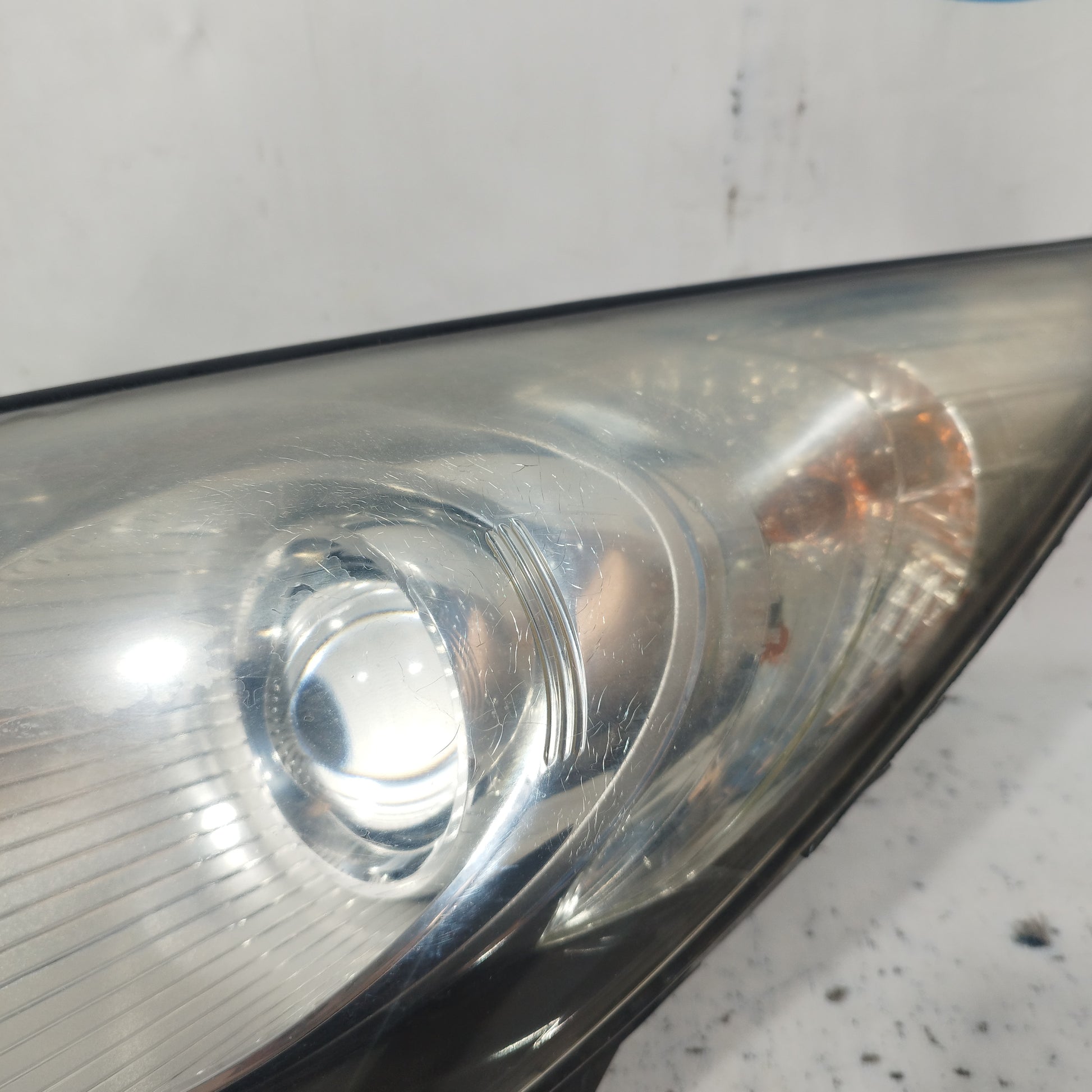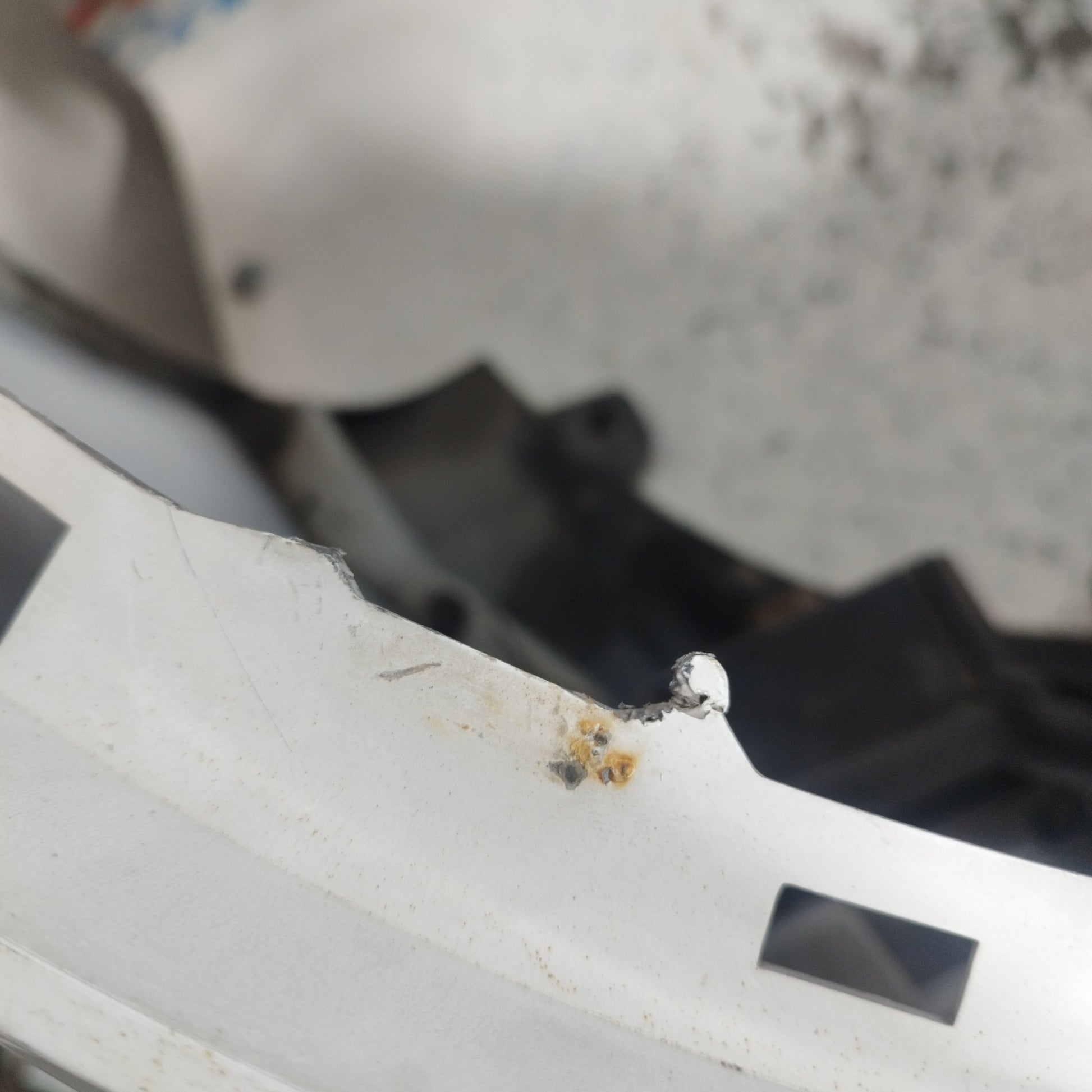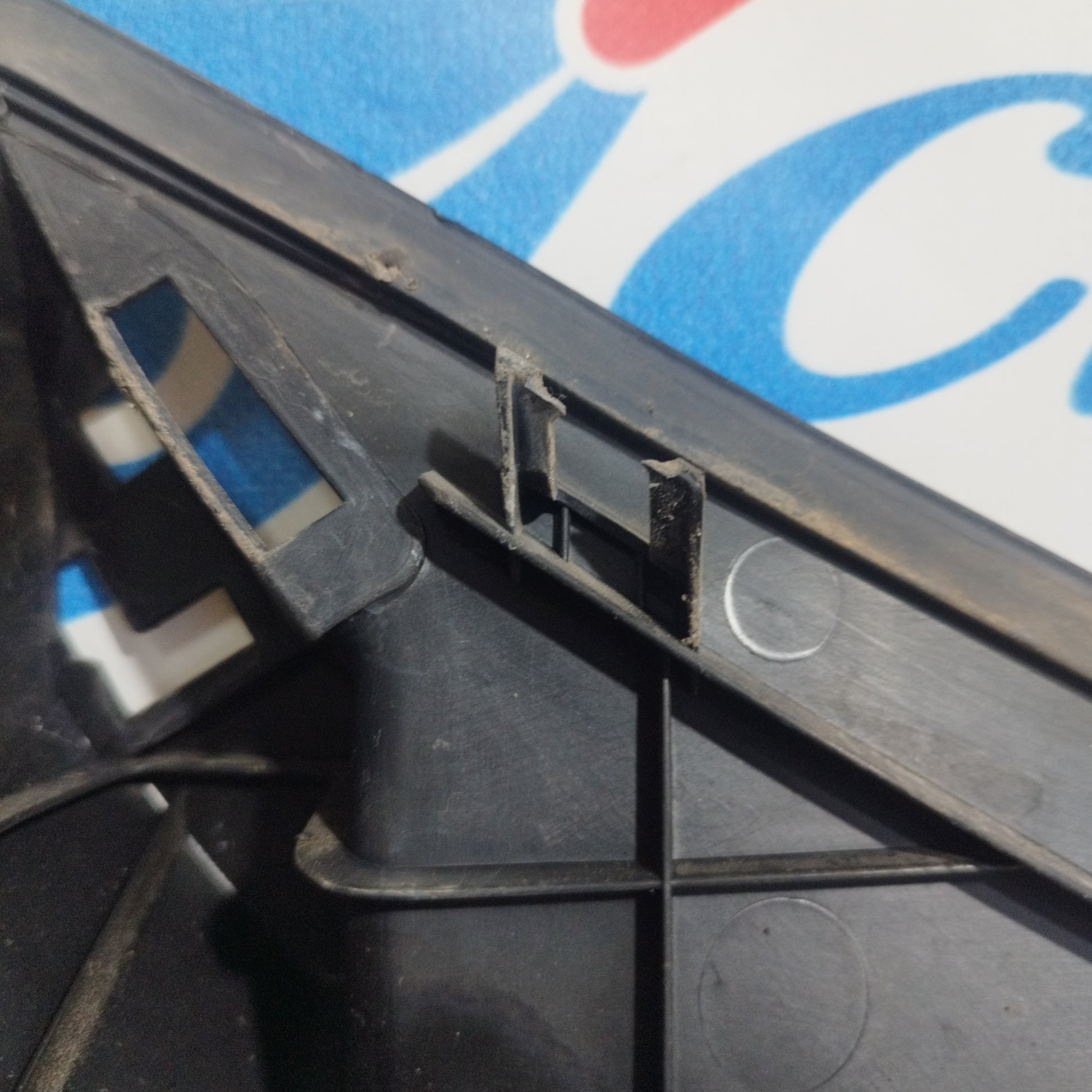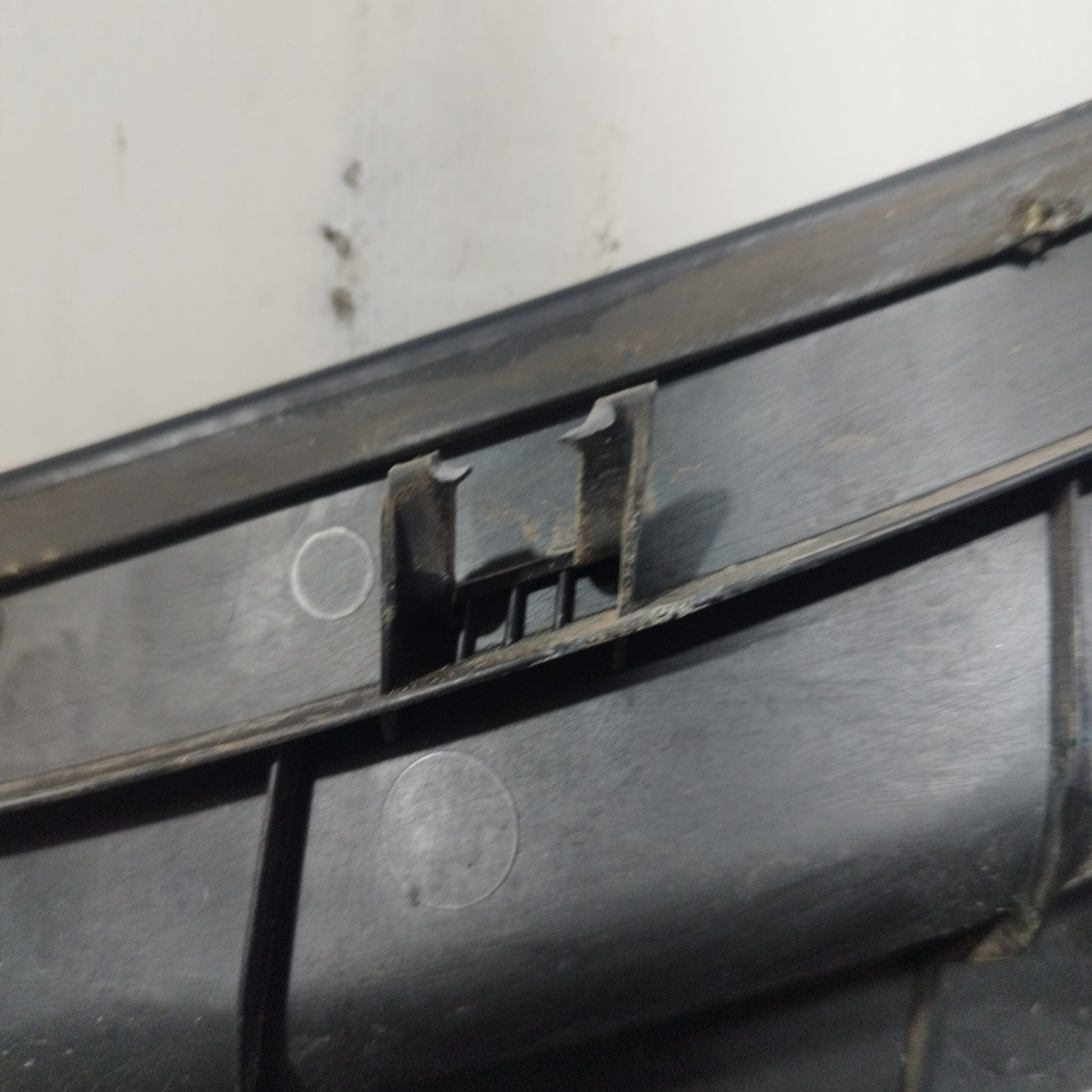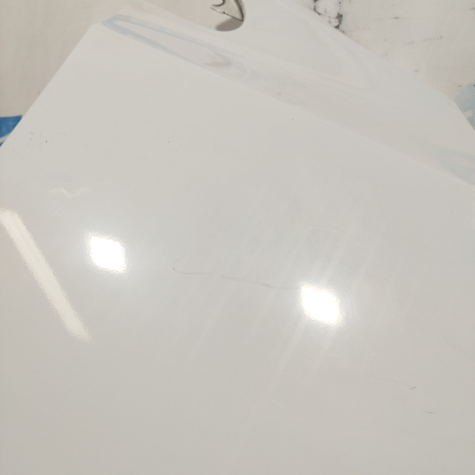 ZUSTAND: Die Motorhaube weist leichte Kratzer und einige kleine Lackabplatzer auf (Fotos 3–6). Der Stoßfänger hat tiefe Kratzer (Fotos 10–16), abgebrochene/beschädigte Befestigungsclips (Fotos 17–21) und ein Loch im Kunststoff des linken Nebelscheinwerfers (Fotos 21–23). Der linke Kotflügel hat leichte Kratzer (Fotos 26–27). Der rechte Kotflügel hat leichte Kratzer und eine Delle (rot markiert). Die Scheinwerfer sind trüb und weisen einige Kratzer auf. Die Regenrinne hat zwei abgebrochene Befestigungsclips.