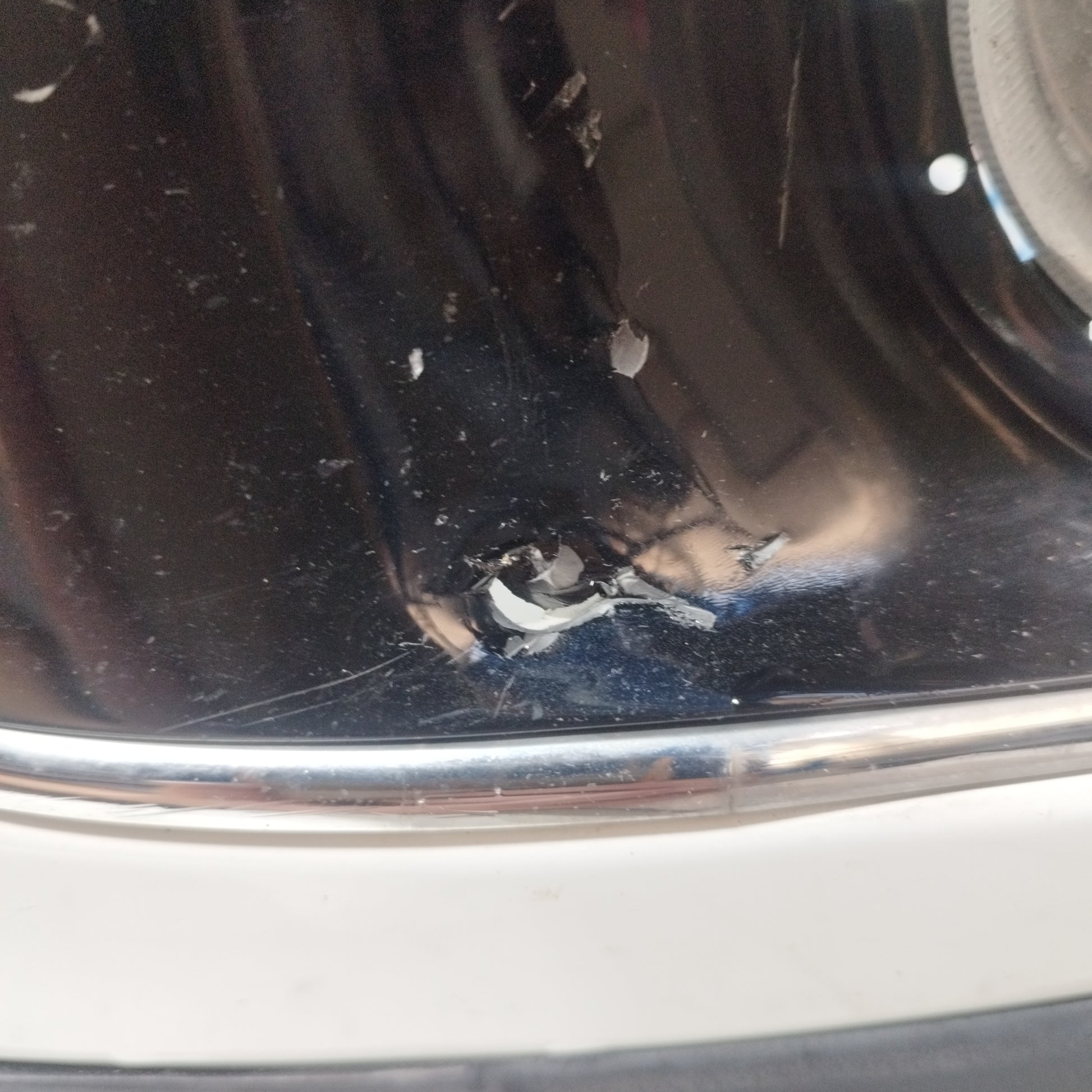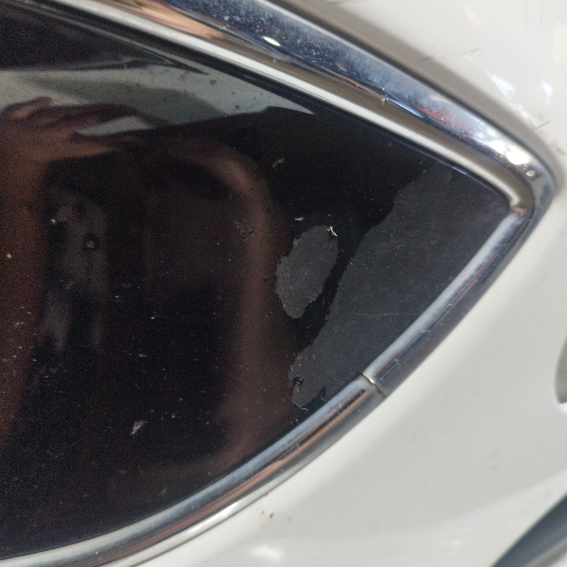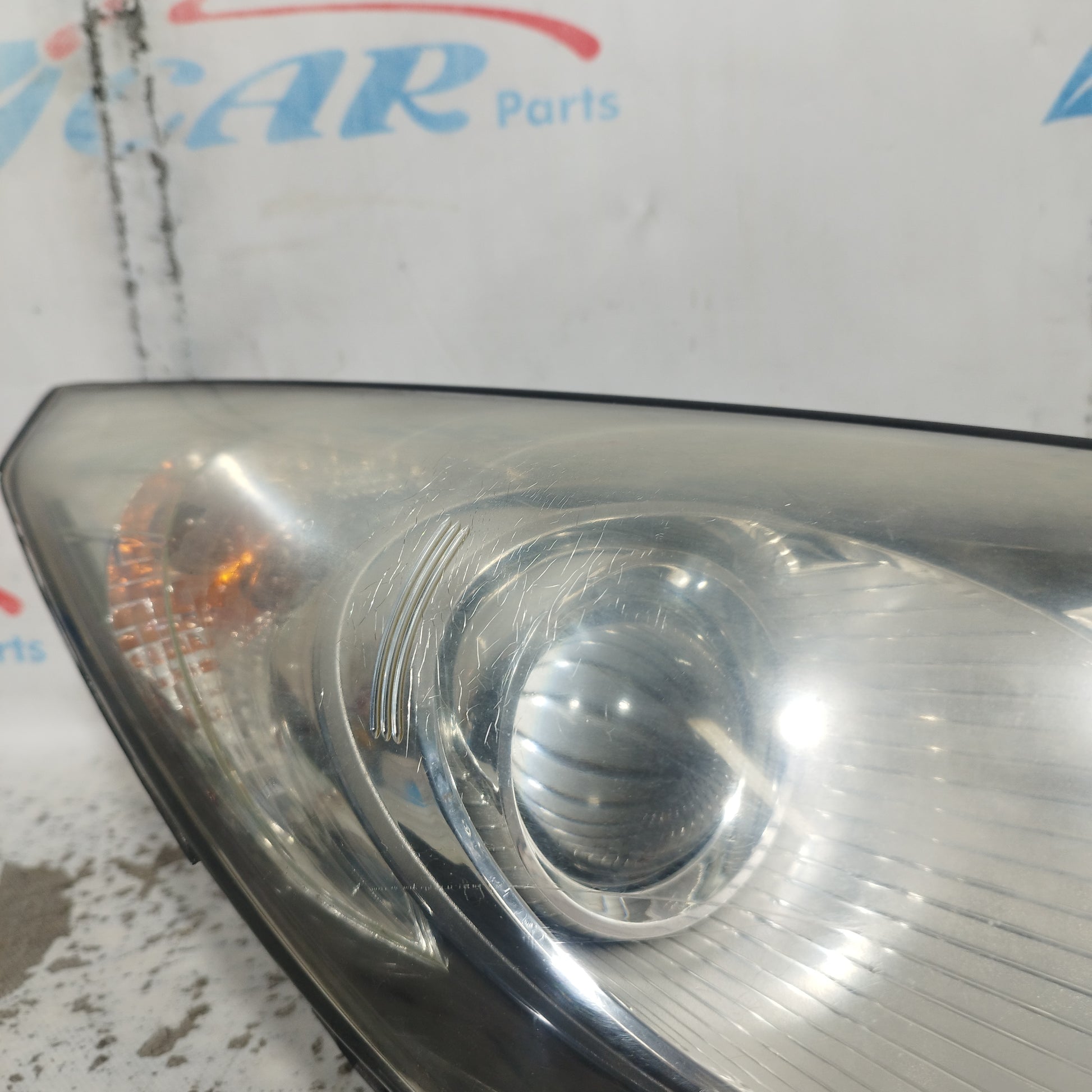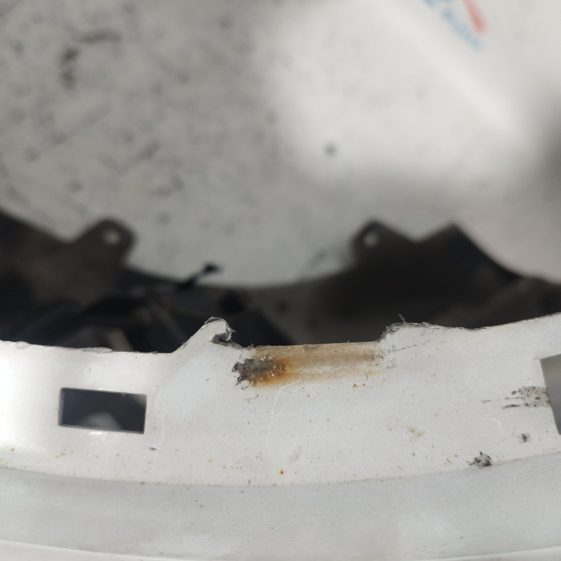 ZUSTAND: Die Motorhaube weist leichte Kratzer und einige kleine Lackabplatzer auf (Fotos 3–6). Der Stoßfänger hat tiefe Kratzer (Fotos 10–16), abgebrochene/beschädigte Befestigungsclips (Fotos 17–21) und ein Loch im Kunststoff des linken Nebelscheinwerfers (Fotos 21–23). Der linke Kotflügel hat leichte Kratzer (Fotos 26–27). Der rechte Kotflügel hat leichte Kratzer und eine Delle (rot markiert). Die Scheinwerfer sind trüb und weisen einige Kratzer auf. Die Regenrinne hat zwei abgebrochene Befestigungsclips.
