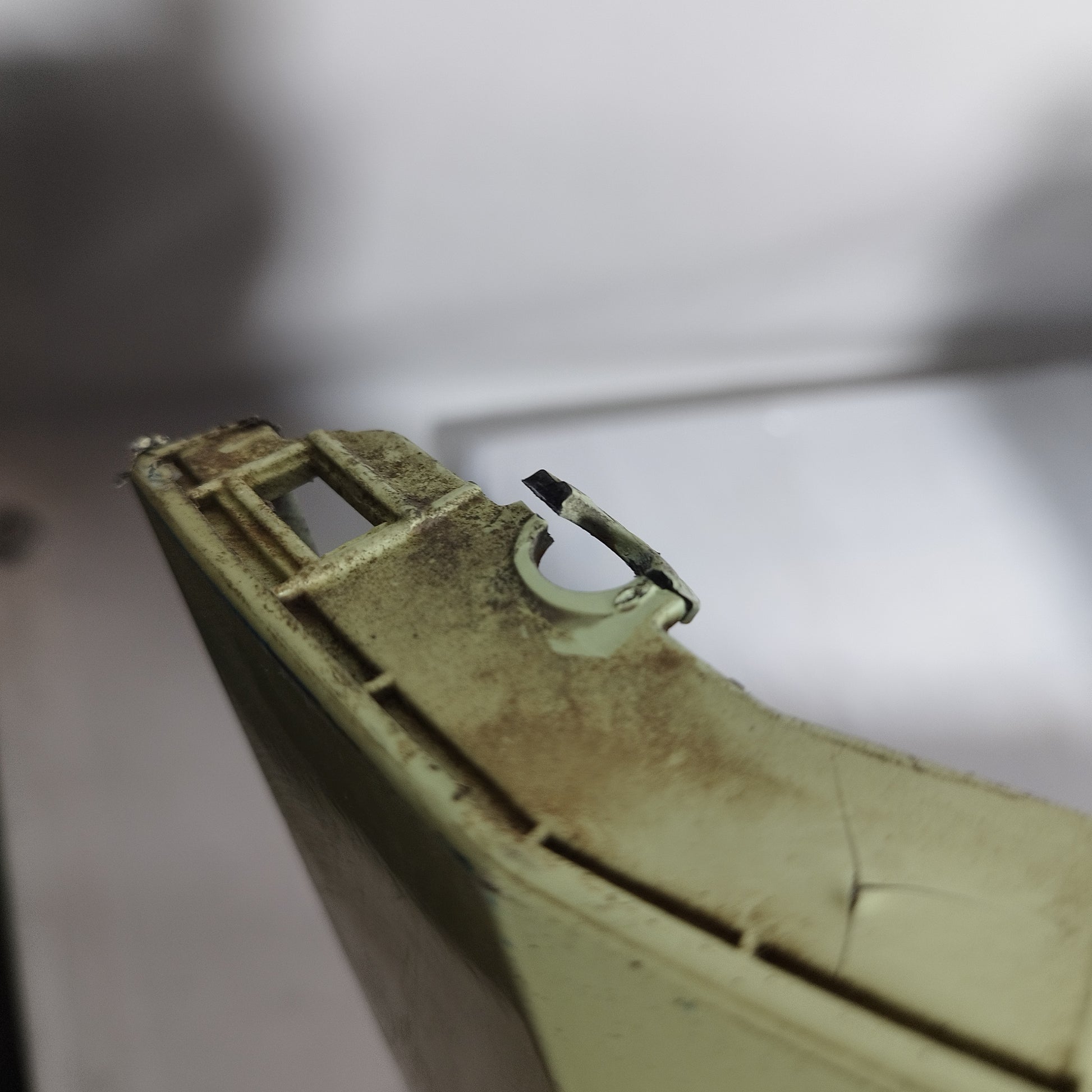 Presenta graffi, qualche punto di vernice saltato, un fermo lesionato (Foto 9) e un fermo rotto (Foto 10)