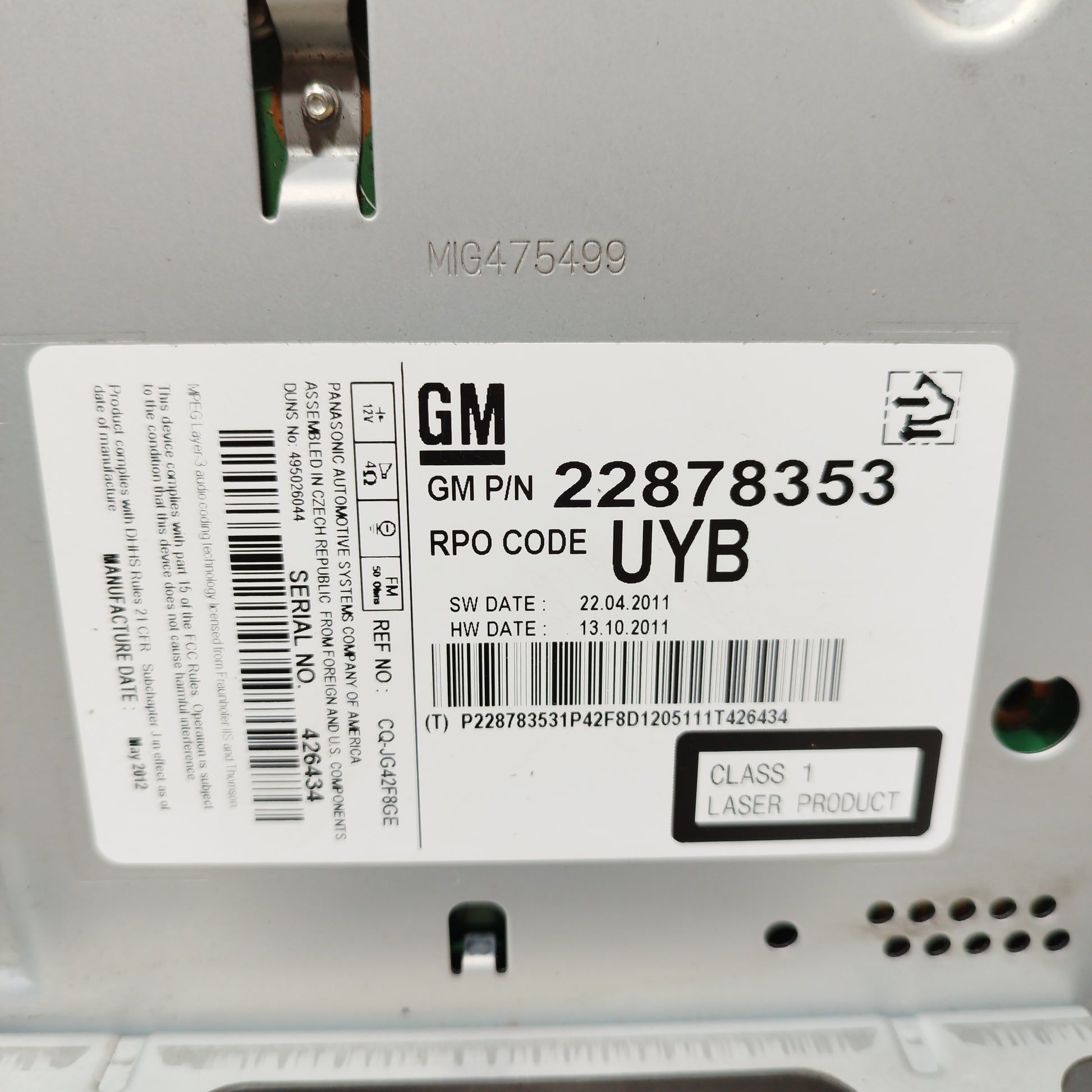 Opel Meriva B 2012 car radio Cod: 22878353 ecoAC9564