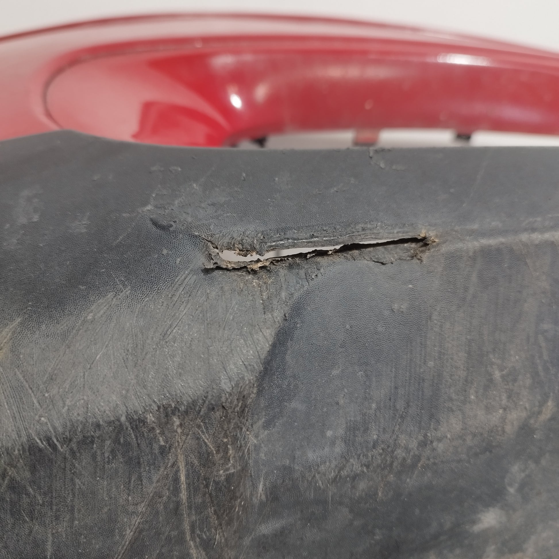 Presenta graffi e vernice danneggiata ( foto n.5-6), un fermo lesionato (foto n.7 ), plastica spaccata inferiormente ( foto n.8)